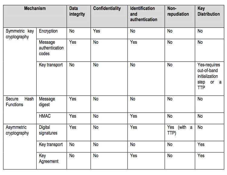 The following table provides a summary of the characteristics of cryptographic techniques: