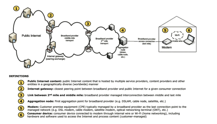 Individual end users (and networks of end users) arrange for Internet access via a “last mile” connection to an Internet service provider (“ISP”), which provides, in turn, routing and connections from the ISP’s own network to the Internet. Content and applications providers offer their products and services to end users via network operators, which enable connectivity and transport into the middle, or “core,” of the Internet.