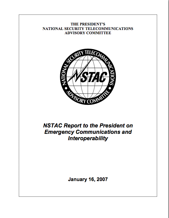 National Security Telecommunications Advisory Committee, NSTAC Report to the President on Emergency Communications and Interoperability (Jan. 16, 2007) (full-text).