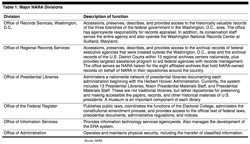 NARA is also responsible for preserving access to government documents and other records of historical significance and overseeing records management throughout the federal government. NARA relies on the use of information systems to receive, process, store, and track government records.