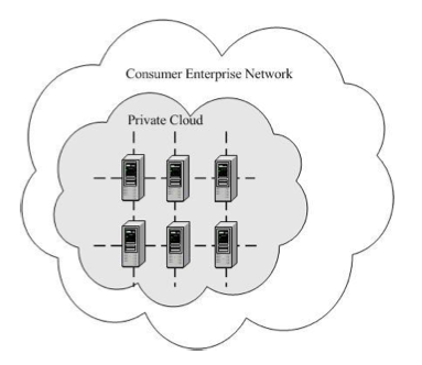 | “ | In private clouds, services are provided exclusively to trusted users via a single-tenant operating environment. Essentially, an organisation's data centre delivers cloud computing services to clients who may or may not be in the premises.[3] | ” |