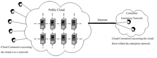 Public cloud computing represents a significant paradigm shift from the conventional norms of an organizational data center to a deperimeterizedinfrastructure open to use by potential adversaries.[3] The Figure below presents a simple view of a public cloud and its customers.